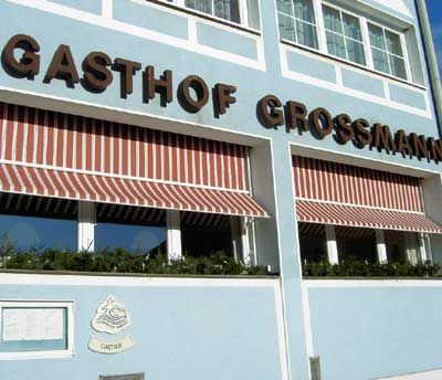 Familie Grossmann in Heidenreichstein ist mehr als glücklich und zufrieden mit dieser Lösung. Die Markise fährt elektrisch gesteuert gerade herunter, öffnet sich nach vorne zu einem Dach und macht – je nach Wunsch – komplett nach unten zu. Eingefahren verschwindet sie hinter der Sturznische. Die gewählte Markisenstoffbespannung verbreitet im Gastzimmer eine angenehme Lichtstimmung und steht in auffallendem Kontrast zur Hausfassade. Übrigens, das geschröpfte, grätenfreie Karpfenfilet ist dort einsame Spitze und einen Besuch wert!